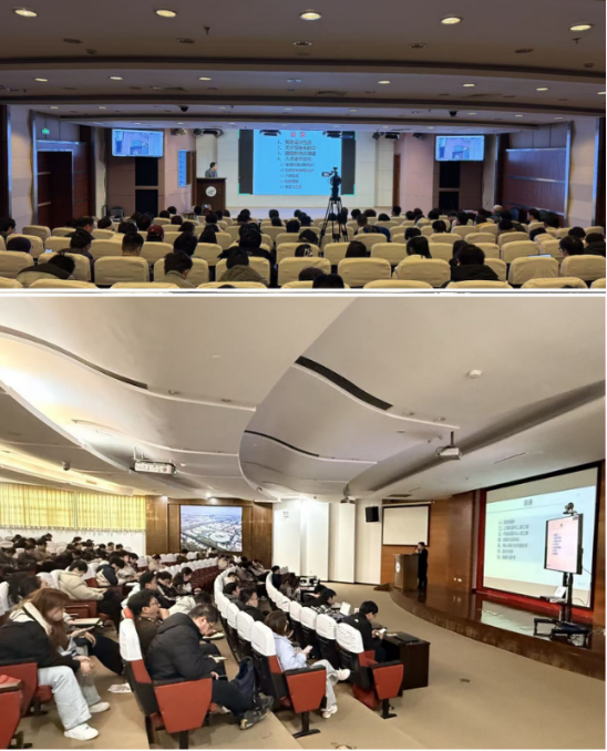 在所长面对面环节,贺战军以《学习徐洪杰老所长的科学家精神和科学理念》为题,深情讲述了徐洪杰研究员带领全所走出发展低谷、再创辉煌,以及应国家战略需求两度转变研究领域,带领科研团队建成上海光源,引领全球钍基熔盐堆技术研发的奋斗历程。贺战军通过图文并茂的讲解,生动展现了徐洪杰老所长作为战略科学家、创新引领者,追求卓越、甘于奉献、自信自立的崇高科学家精神。邰仁忠以《光子科学技术与未来展望》为题,系统梳理了上海光源、软X射线自由电子激光装置、质子治疗装置等重大科技基础设施的建设与发展历程,详细解读上海光源未来发展规划,鼓励全体研究生主动投身国家重大科研任务,树立报国之志,锤炼过硬本领,成长为堪当大任的科研栋梁之材。