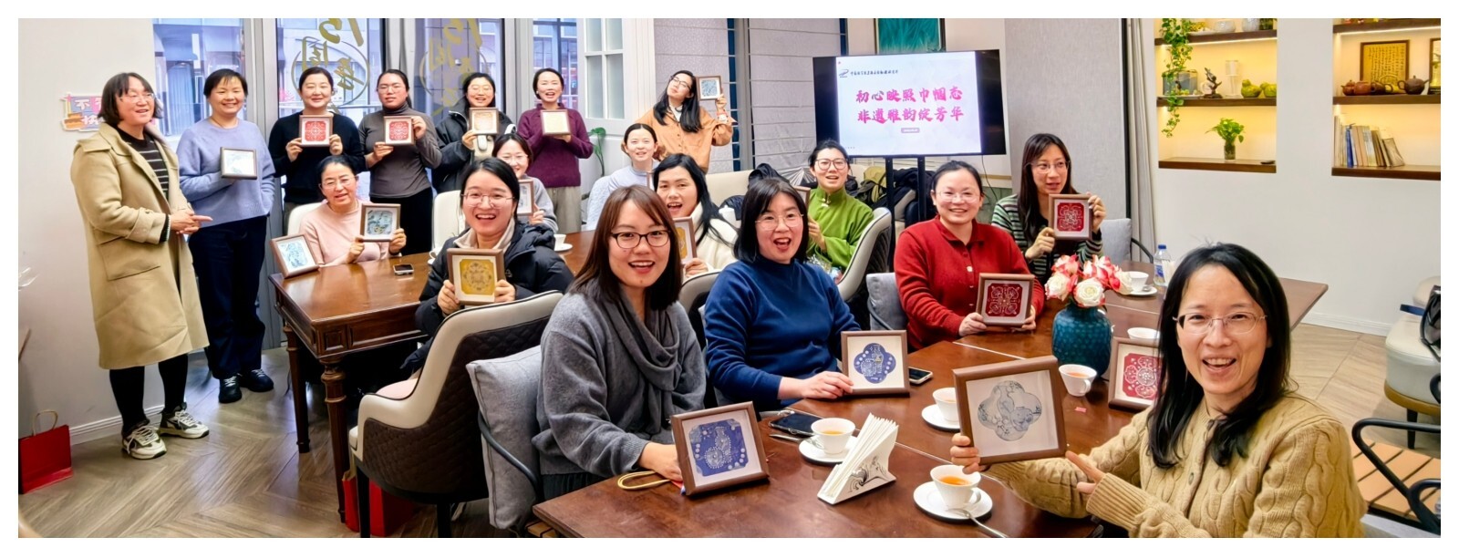 活动伊始,大家走进“初心映照 海上风华”——中国妇女运动在上海历程展,通过珍贵史料与影像,重温百年间上海女性投身革命、建设与改革的奋斗足迹,感悟“巾帼不让须眉”的使命担当。在非遗体验环节,大家学习茶艺知识,围坐品茗、畅谈心声,在茶香氤氲中交流工作与学习心得,积极为研究所工作建言献策,为抢占科技制高点凝聚力量。随后,大家亲手体验了非遗宋锦珍珠画相框制作,在指尖翻飞间沉浸式感受中华优秀传统文化的独特魅力。