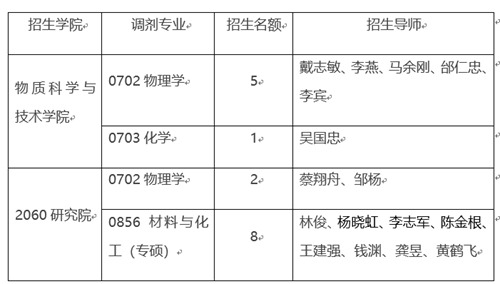 符合条件的考生须在2026年4月8日起登陆“中国研究生招生信息网”(网址:http://yz.chsi.com.cn或http://yz.chsi.cn)的“全国硕士研究生招生调剂服务系统”,选择“上海科技大学-物质科学与技术学院”,填报专业选择“0702物理学或0703化学或0856材料与化工”。(请在调剂备注信息中注明:上海应物所联合培养)