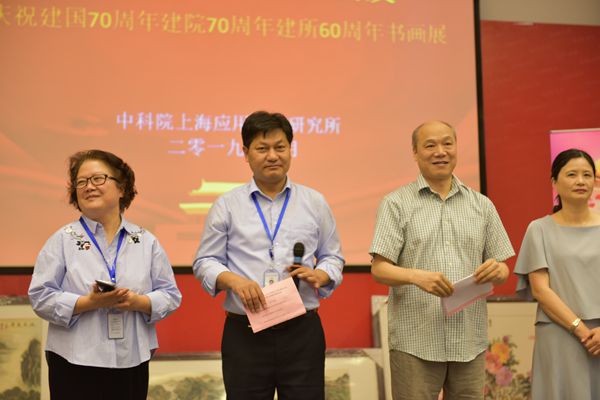首先,上海应物所纪委副书记孙剑华对大家在金秋送爽的季节来到金桂飘香的应物所,出席“与时代同行,创业再出发”书画展开幕式,表示热烈欢迎;黄雁主任代表市科技系统退管会对关心、支持和参与此次主题书画展的领导、老同志和退管干部表示衷心的感谢;丁虹处长鼓励老同志们老有所乐、老有所为。