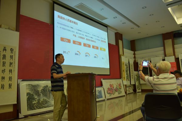 孙剑华做《离退休工作报告》,给大家详细介绍了我所离退休管理服务工作情况,并带领大家集体唱生日快乐歌。