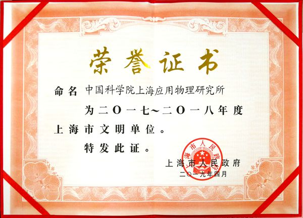 当前位置:首页 > 党建园地 > 新闻通知 > 工作动态喜报!上海应物所连续五届荣获“上海市文明单位”称号!