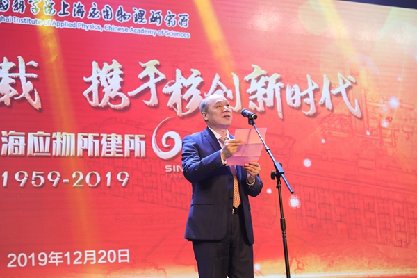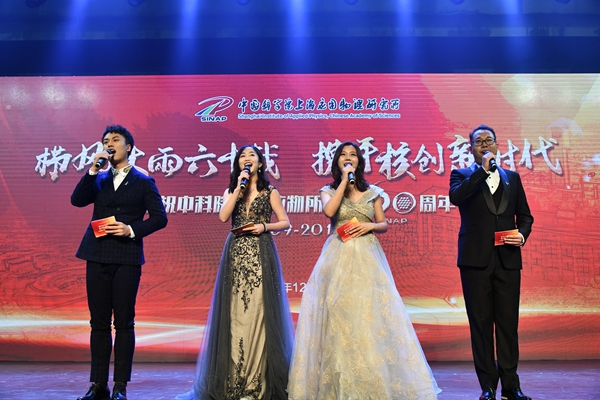 2019年12月20日晚,中国科学院上海应用物理研究所在保利大剧院举办庆祝建所60周年文艺晚会。所长戴志敏,党委书记赵明华,党委副书记、纪委书记吉峻,副所长贺战军,副所长李晴暖,原党委书记陆晓峰,原副所长姚志铨,原党委副书记、纪委书记李燕等领导,以及全所近400位职工和学生出席晚会现场,近百名职工学生献上了自编自演的精彩节目。