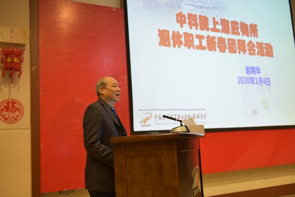 子年大有山河壮,甲岁丰盈日月新。2020年1月4日上午,上海应物所退休职工新春团拜会在学术活动中心多功能厅举行。上海应物所党委书记、副所长赵明华,党委副书记、纪委书记吉峻,办公室、人教处、医务室等相关部门负责人以及所2004年至2014年期间退休的老同志等100余人出席活动,活动由纪委副书记孙剑华主持。