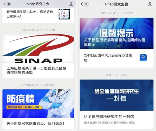 新冠肺炎病毒对研究生身体健康构成威胁,同时对学生心理健康状态也将产生影响,为了尽量减少焦虑恐慌等负面情绪,研究生部的老师们又变身成了心理辅导员。第一时间就建立湖北地区研究生微信群,并与35名在湖北的学生逐个电话联系,逐一了解学生本人与家人身体健康状况以及近期生活状态。在微信群中不定期发布科学防疫知识,心理健康知识、心理咨询活动及节日问候等信息,尽最大努力帮助疫区学生积极应对疫情。对每天统计的学生信息进行分析,对异常情况密切跟踪,及时进行沟通和心理辅导。工作中遇到一名湖北学生因为心理过渡紧张引发了体温异常,后来经过连续几天的电话沟通,学生的紧张心理得到缓解,体温也恢复了正常。研究生部还积极联系国科大心理健康中心,充分利用中心提供的各项资源和服务,向全体师生公布了远程心理援助服务通知,鼓励研究生根据自己的需求,积极寻求心理帮助。