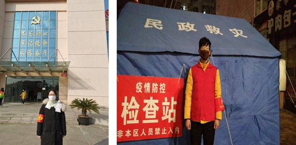 2017级博士研究生周逸媚(左)、2018级硕士研究生梁超飞(右)在家乡参加志愿服务