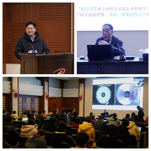 报告会上,沈文庆先生生动地讲述了科学与艺术的共通点。科学是对自然界现象的抽象和总结,这与艺术创作方式相似,科学和艺术都在寻求真理的普遍性,他通过解读科学领域学术研讨会的宣传画作的思想含义,告诉大家对科学观念的理解和对艺术的美学鉴赏可以融汇情感并启迪智慧,进而对自然进行探索,展现人了类的创造性。同时沈先生讲述了李政道先生“科学与艺术对话”的故事,阐述了科学与艺术相互交融能使科学研究在全面探索未知中获得灵感,使科学更美,艺术更理性,激励创新。