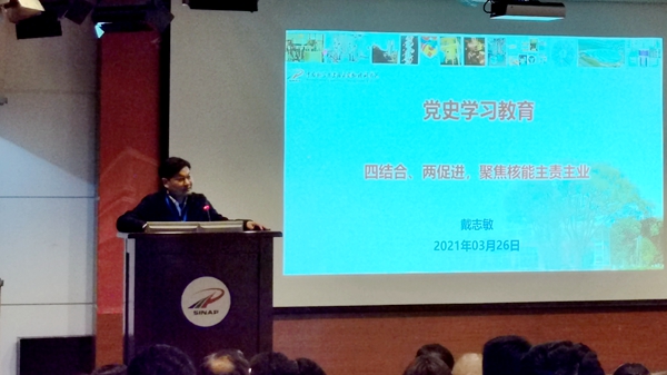 上海分院分党组书记、沪区党委书记李正华作了《学深悟透?以史鉴今?勇开新局》党史专题报告,李正华同志结合党中央、院党组关于开展党史学习教育和中科院战略发展规划的要求,并结合我所发展历史和现阶段实际情况,强调党对科技事业领导的极端重要性,激励我所广大科研人员践行国家战略科技力量的初心使命,推动全所职工心系“国家事”,肩扛“国家责”。