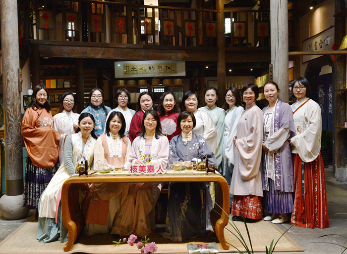 活动中,姐妹们穿上蕴含中国传统特色的汉服,漫步州桥老街,寻觅明清古意,感受传统文化的深厚底蕴。在品春茶的同时重温华夏礼仪,茶是生活和艺术的综合,将茶作为一个钥匙,打开身体与心灵相连之门,在一杯茶汤中重塑生活的秩序感和仪式感,增进了大家对中华传统茶文化的认识和对中式生活之美的向往。