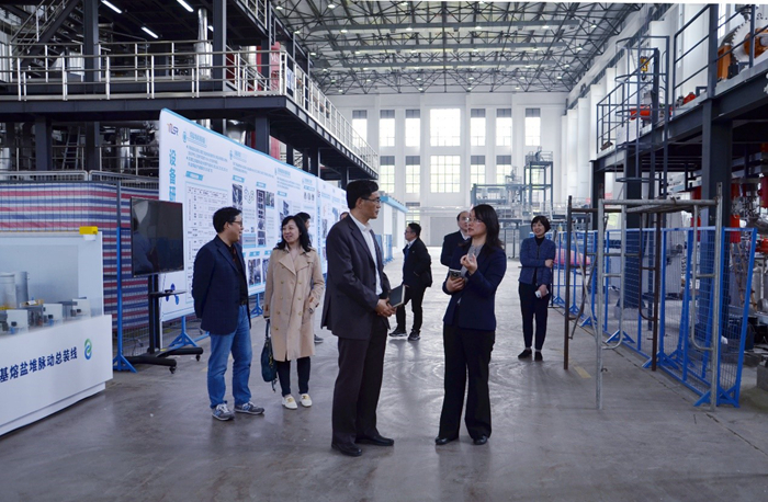 李晴暖首先陪同上海市核电办一行实地参观了钍基熔盐堆核能系统成果展厅、热工大楼实验台架和仿真实验平台等科学研究设施。