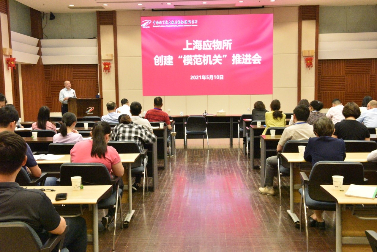 为深入贯彻落实习近平总书记在中央和国家机关党的建设工作会议上的重要讲话精神,进一步落实院党组巡视反馈意见的整改工作,结合我所实际及科研管理工作需求,上海应物所于5月10日下午组织召开了创建“模范机关”工作推进会,党委书记、副所长赵明华,党委副书记、纪委书记吉峻,中层领导干部和管理部门工作人员近60人参加会议。会议由吉峻主持。