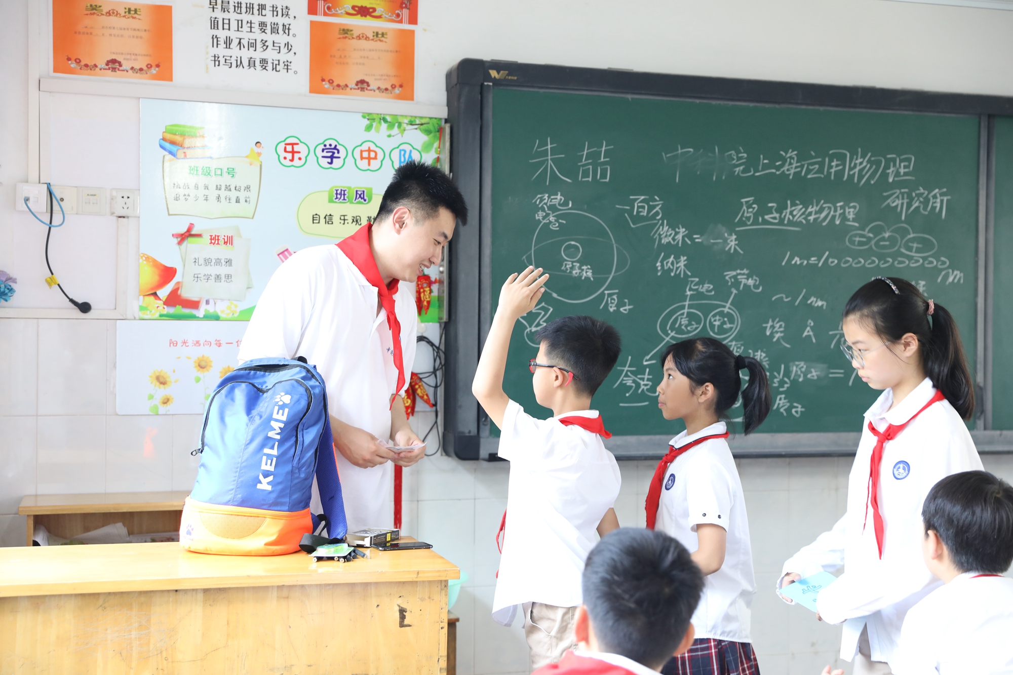 5月14日,由中科院上海分院主办的“让我们拥抱科学”科普进校园活动来到浙江宁海县,上海应物所核力前行科普社团成员吴慧妍、朱喆、匡攀、聂雪颖以及彭浩副研究员代表上海应物所参加了此次活动,为西店小学和金桥小学的同学们带去了精彩的科普报告。