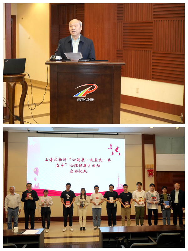 赵明华在开幕辞中表示,通过心理健康月的开展,将心理健康教育融入渗透研究所各项育人工作中,营造健康向上的氛围,促进职工与学生自我成长,培养身心健康的高层次人才。在同时举行的心理健康书籍授书仪式中,赵明华书记与研究生党总支副书记王文锋研究员向我所研究生心理委员赠书并勉励同学们认真学习心理健康知识。