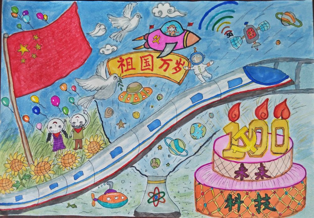 小小画展上,一幅幅主题突出、色彩鲜明、创意无限、充满童真的绘画作品凝聚着“科二代”的智慧和心血,表达着他们对党生日的祝福、对祖国妈妈的热爱、对科技的憧憬和对美好的向往。