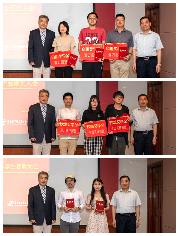 首先举行2020年度优秀学生表彰大会。吉峻宣读了本年度荣获国家和中国科学院各类奖项的学生名单,并对所有获奖同学表示了祝贺。2020年我所研究生培养成绩斐然,1位博士研究生获得中国科学院对在学研究生的最高奖励----中科院院长特别奖,2位博士研究生荣获中科院院长优秀奖,2位研究生获中国科学院朱李月华优秀博士研究生奖,1位博士研究生首获中国科学院大学唐立新奖学金,另有近百位研究生分别获得省市及中国科学院大学各项荣誉称号。他希望在座学子以优秀研究生为榜样,坚定理想信念,做新时代逐梦者、奋斗者、实干者。随后吉峻向赵振堂院士颁发了中国科学院大学爱心大使荣誉奖杯,并同赵振堂院士向获奖研究生代表颁发了“启明奖学金”、“梦想奖学金”及其他各类奖项荣誉证书。