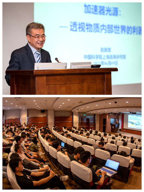 在“与科学大家面对面——院士系列讲座”上,赵振堂院士以《加速器光源——透视物质内部世界的利器》为题,向在座研究生讲解了粒子加速器的发现原理和发展沿革,同步辐射光源所产生的看不见的“光”是人类探索微观世界的利器,他对粒子加速器在众多基础科学领域的研究应用进行了系统介绍,同时对X射线自由电子激光装置的技术研发和工程进展进行了详细阐述。赵振堂院士表示,我所研究生作为加速器研究领域的生力军,日夜与广大科研人员奋战在科研一线,在我国加速器光源的蓬勃发展的进程中尽展才华,展现了上海应物所青年学子甘于奉献、勇于创新的精神风貌。