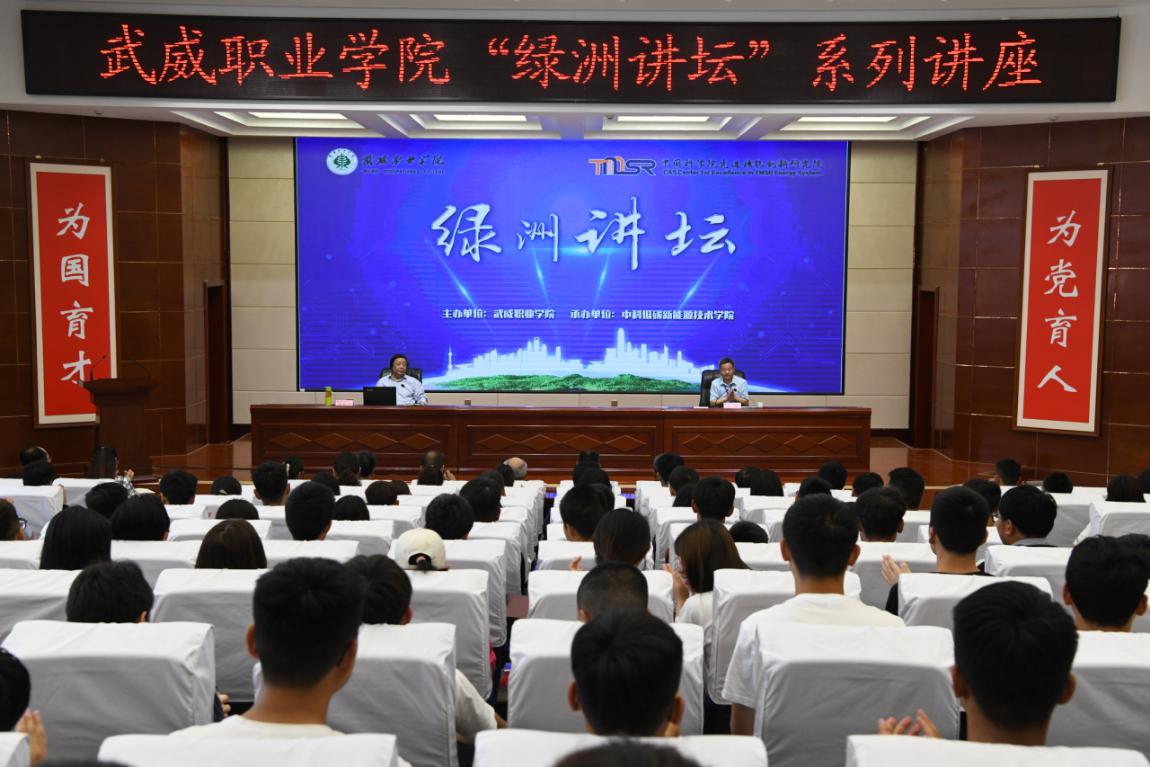 由中科低碳新能源技术学院发起的“绿洲讲坛”,旨在惠及武威职业学院全体老师、学生及其职教联盟的会员,拓展大家的视野,提升师生综合素养和素质。同时以部分讲座核心理念为引领,促进武威职业学院深化教育教学改革。2021年,“绿洲讲坛”获批甘肃省职业院校特色文化品牌立项建设。作为与西部高职院校联合培养技术技能人才理念的提出者,徐洪杰研究员这次的正式访问交流和主旨报告,对于持续推进联合办学工作,高水平、高标准建设中科低碳新能源技术学院具有重要意义。 (科研与教育处 供稿)