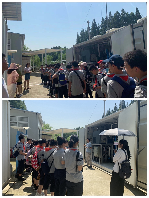 在现场参观环节,学生们分为6组在班级老师和应物所志愿者带领下,来到科研一线,近距离了解科学研究设施。在新材料楼,陆燕玲、李德辉老师就疲劳试验机和万能力学试验机的功能和应用进行了讲解,利用万能力学试验机进行了演示实验。在热工楼核能展厅,叶祥熙老师通俗生动地介绍了钍基熔盐堆核能系统的研发成果和重要的实验台架的工作原理;在高温制氢储能装置前,杜贤龙、严慧娟、洪春峰老师讲解高温电解制氢的工作原理及氢燃料电池等前沿科学知识。参观过程中同学们积极提问,与科研人员进行了充分的互动,同学们收获了最前沿的科学知识,也激发了学科学、爱科学的热情。
