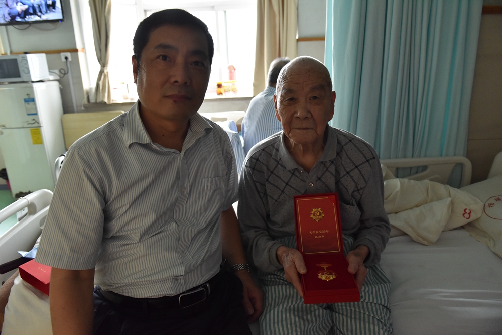 年初,接上级通知要求上海应物对健在的党龄达到50周年、一贯表现良好的党员进行统计、查证,共上报符合条件的老党员10名。经党委研究讨论,结合老党员自身健康情况,6月15日、17日由吉峻带队到老党员家中、杨浦中心医院安图分院对马群、李保同、马明录、苏洪成、韩子健、诸顺林等老党员走访慰问并为其举行简单而庄重的纪念章颁发仪式。6月21日,赵明华带队到华东医院为党龄84周年和77周年的老党员韩志青、巴延年举行了简单而庄重的纪念章颁发仪式。他们向老党员们致以节日的问候,祝愿老党员们身体健康、阖家幸福。