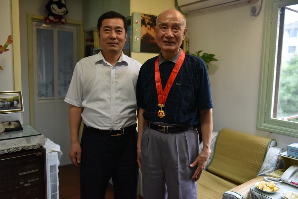 为热烈庆祝中国共产党成立100周年,根据《中共中央办公厅关于做好“光荣在党50年”纪念章颁发工作的通知》(中办发电〔2021〕7号)精神要求,上海应物所党委书记赵明华,党委副书记、纪委书记吉峻带队上门为“光荣在党50年”的老党员举行荣誉纪念章颁发仪式。