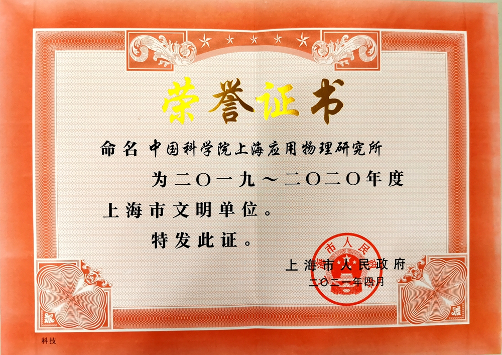 2021年,上海市精神文明建设委员会办公室正式公布“2019-2020年度上海市文明单位”名单,上海应物所连续六届荣获“上海市文明单位”称号。