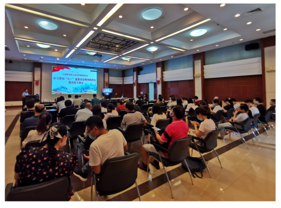 党委书记、副所长赵明华首先介绍了研究所党史教育阶段性进展、“我为群众办实事”项目情况,分析了主要不足,并就下一阶段计划进行了部署。随后,赵明华带领党务干部学习了习近平总书记在庆祝中国共产党成立100周年大会上的重要讲话精神,回顾中国共产党百年光辉历程、诠释中国共产党的伟大建党精神、展望中华民族伟大复兴,并再次强调所内要认真学习贯彻习总书记“建党100周年大会”重要讲话精神的要求。