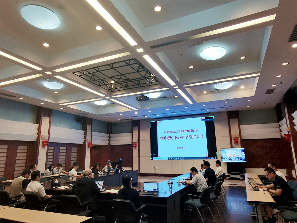 8月24日下午,上海应物所召开党委理论中心组学习扩大会,会议由党委书记、副所长赵明华主持,党委委员、管理部门负责人共计19人同时在嘉定园区和武威园区参会。