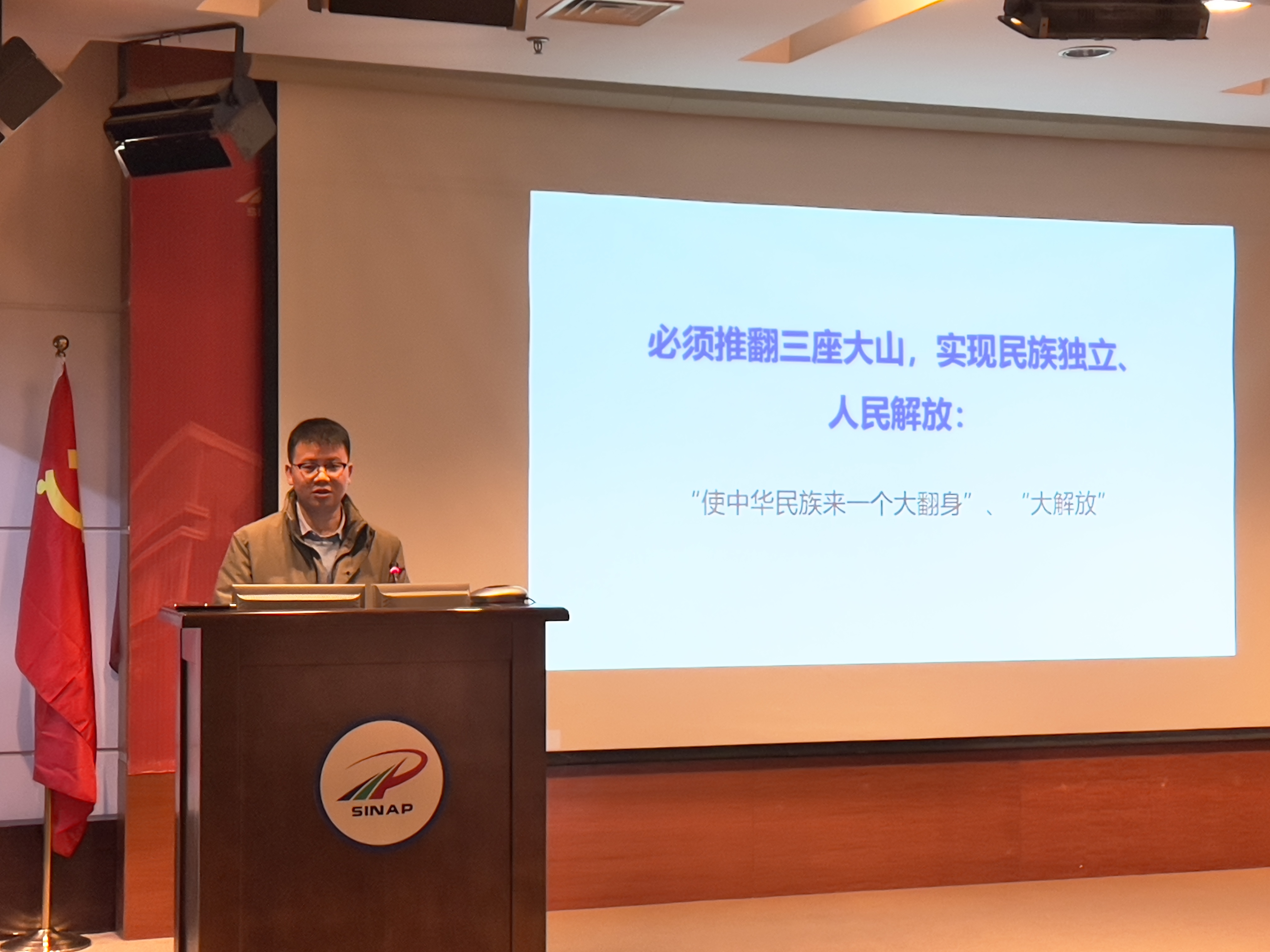 会上举行了授书仪式,唐裕华代表所党委向年轻干部理论学习小组的组长代表授书。黄鹤飞做了题为《中国共产党新民主主义革命时期的奋斗历程及启示》的领学报告。 (团委 供稿)