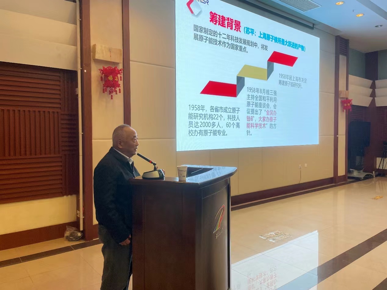 活动邀请原上海应物所党委书记、上海应物所《所志》编纂委员会主任陆晓峰做了题为“档案中的我所历史和科学家精神”的主题报告。学史明理、学史增信、学史崇德、学史力行,陆晓峰从研究所的筹建、“728”工程、科研工作再起步三个阶段阐述了我所建所60多年以来栉风沐雨的奋斗历程和取得的辉煌成就,列举了包括苏平、黄天生、张家骅、杨福家、王昌之等我所老一辈科学家在核所做出的重要贡献以及他们身上体现出的“奋发自强、求实创新、文明团结”的核所精神。