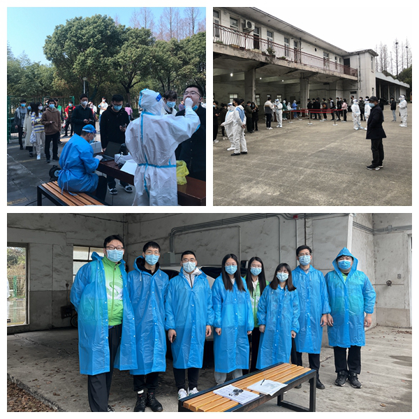 在徐行镇政府关心和支持下,我所积极联系有关部门协调医疗力量进入园区对在园区的职工和研究生进行核酸筛查,研究生志愿者团队配合医护人员先后完成了4次核酸检测工作,他们帮忙扫码登记,组织人员有序排队,维持现场秩序,最后统计检测名单,做到园区人员应检尽检,志愿者们以高效有序的行动配合防疫,用相互帮助传递友爱。