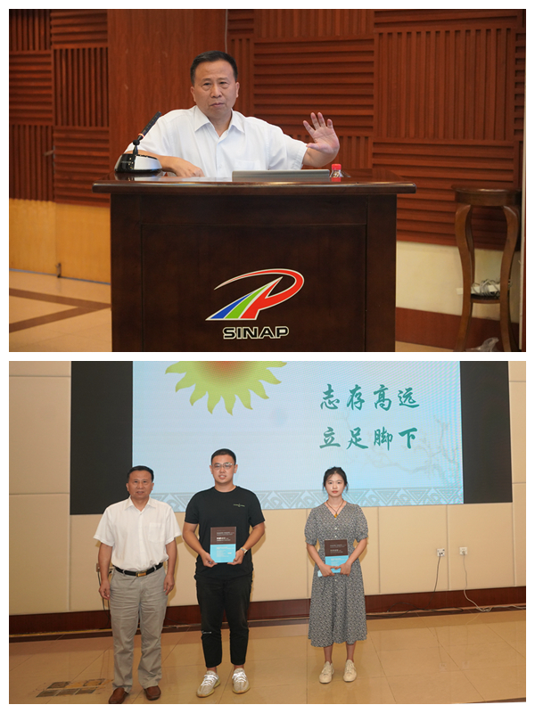 唐裕华在报告中向同学们系统地介绍了研究所的历史沿革、取得的重大科研成果以及未来发展目标等内容,同时对研究生教育发展历程、研究生培养体系及教育教学成果等做了详细介绍。勉励同学们勇担时代重任,将个人发展与国家需要相结合,做好自己的科研生涯规划,设计好未来的人生道路。在授书仪式上,唐裕华书记授予新生代表《科研诚信:负责任的科研行为教程与案例》并勉励同学们遵守科研道德规范,提高科研诚信意识。