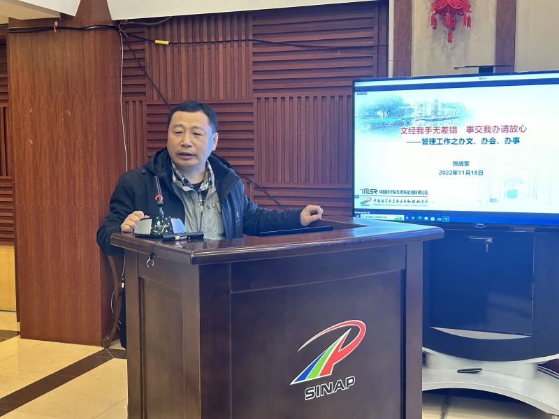 上海应物所副所长贺战军作《文经我手无差错,事交我办请放心——管理工作中的办文办会办事》的报告。他结合多年管理工作经验,从基本概念、理念与原则、思路与方法、要求与规范等几个方面,通过正反案例详细、系统阐述了管理工作中的办文办会办事。