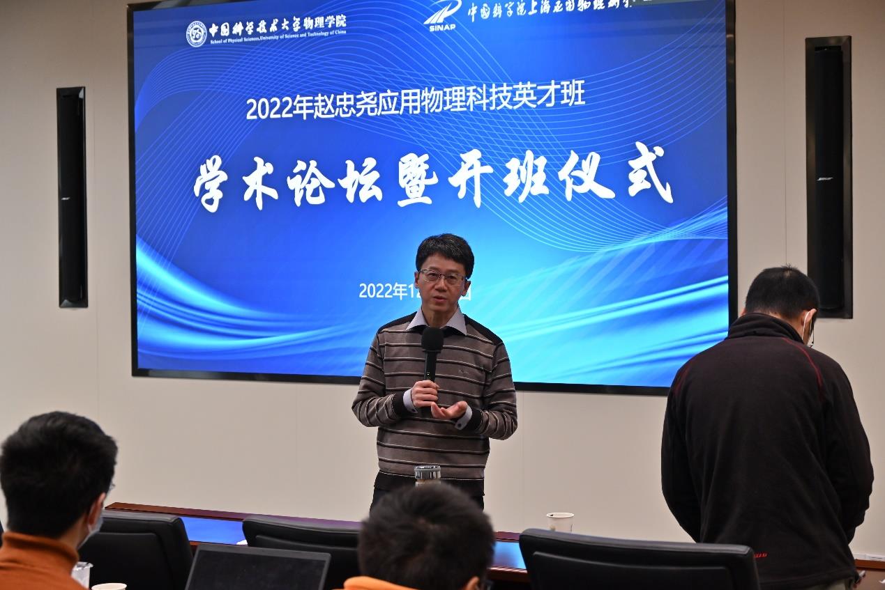 2022年12月11日,由中国科学院上海应用物理研究所和中国科学技术大学物理学院共同主办的“赵忠尧应用物理科技英才班”学术论坛暨第十四届英才班开班仪式成功举办。中国科学技术大学物理学院副院长韩良、党委副书记凌锋、办公室主任李业龙、英才班主管教授王群,上海应物所副所长蔡翔舟、科研与教育处副处长钟静,双方老师及英才班学员共计40余人在线上线下参加了此次活动。本次活动由凌锋主持。