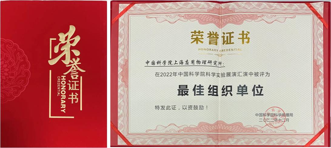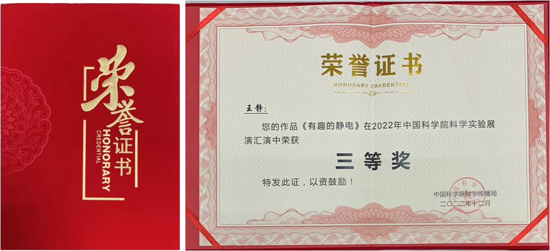为深入贯彻落实《关于新时代进一步加强科学技术普及工作的意见》,大力普及科学知识、弘扬科学精神、传播科学思想、倡导科学方法,2022年11月,中国科学院科学传播局以线上形式开展了2022年中国科学院科学实验展演汇演暨全国科学实验展演汇演大赛。近日大赛结果揭晓,上海应用物理研究所荣获最佳组织单位,在读研究生付怡然《密度的魔力》和王静《有趣的静电》两个作品荣获三等奖。