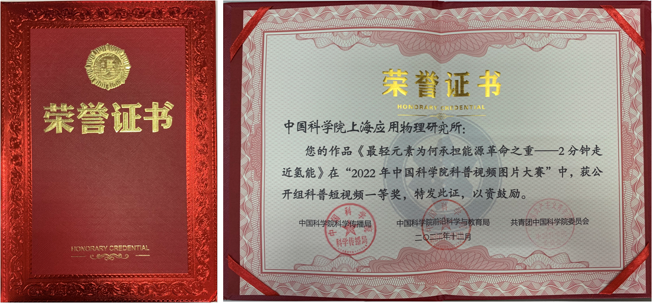 由中国科学院科学传播局、前沿科学与教育局、团委主办,计算机网络信息中心和科学传播局网络科普工作协作组承办的“2022年中国科学院科普视频图片大赛”于2022年8月-12月开展。本次活动得到了全院76个院所的支持,共征集到科普视频、科普短视频、科学图片458份。近日大赛结果揭晓,由中国科学院上海应用物理研究所制作的科普短视频《最轻元素为何承担能源革命之重——2分钟走近氢能》荣获本次大赛短视频类一等奖。