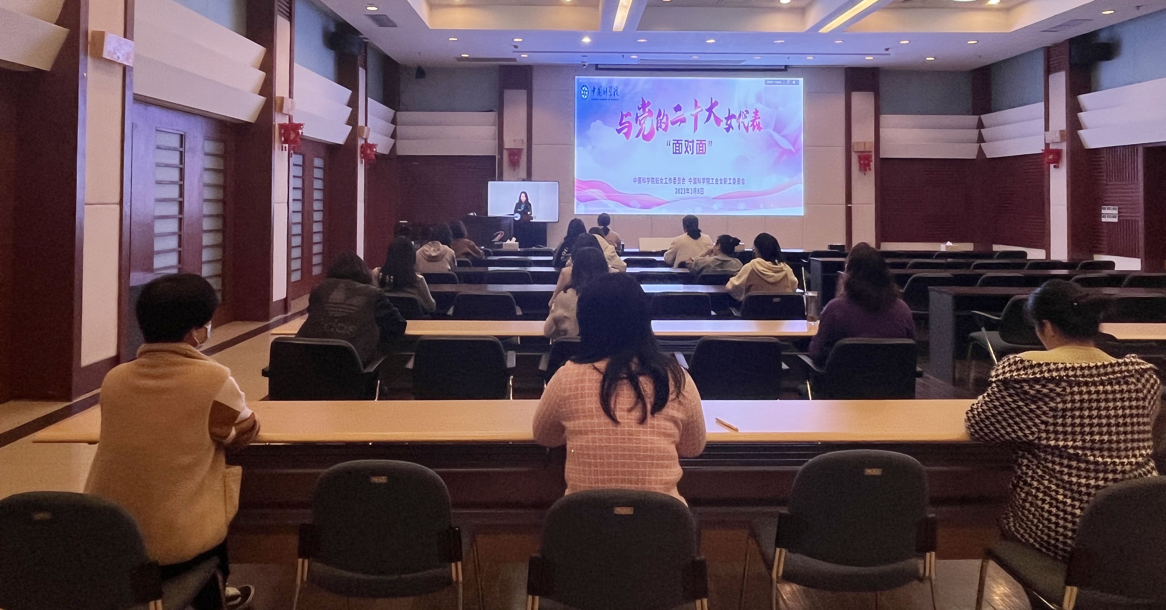 科技筑梦 巾帼勇担当 上午九时,为纪念第113 个“三八”国际劳动妇女节,学习宣传贯彻党的二十大精神,所妇委组织全所女职工观看了中科院妇工委、中科院工会女工委举办的与党的二十大女代表“面对面”活动,听取了我院三位党的二十大女代表的交流报告,并观看了《科技路上的巾帼追梦人》视频短片。