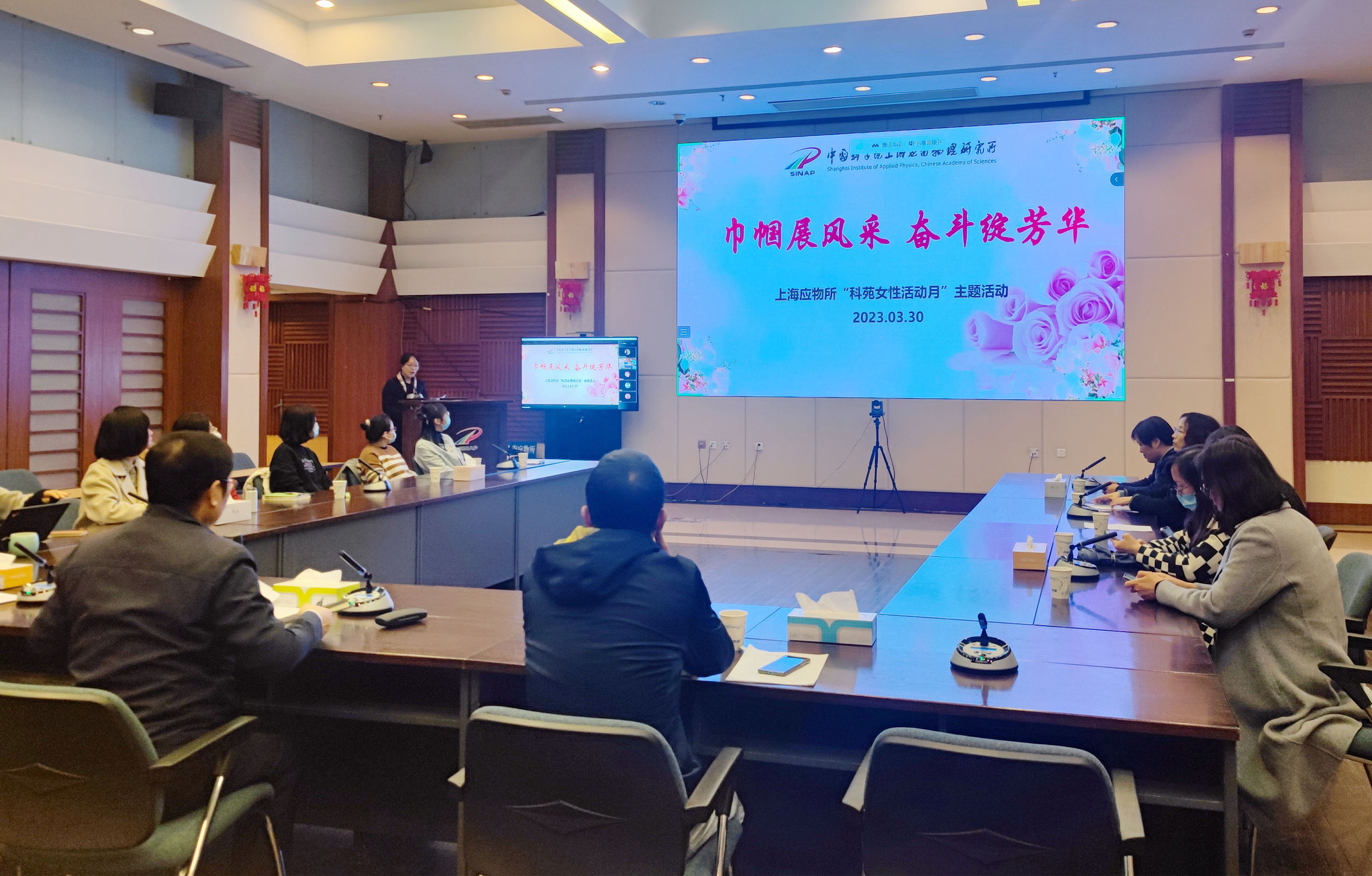 为深入学习贯彻党的二十大精神,落实党中央对群团工作的新部署新要求,进一步营造氛围、丰富精神文化生活,激励我所女职工聚焦主责主业,积极岗位建功,上海应物所妇委结合我院“科苑女性活动月”,于3月30日在两园区以线上线下相结合形式开展了“巾帼展风采 奋斗绽芳华”主题活动。上海应物所党委副书记、纪委书记吉峻,党建办主任韩欣,团委书记李吉豪以及我所女职工、女同学等参加活动。活动由所妇委主任任翠兰主持。