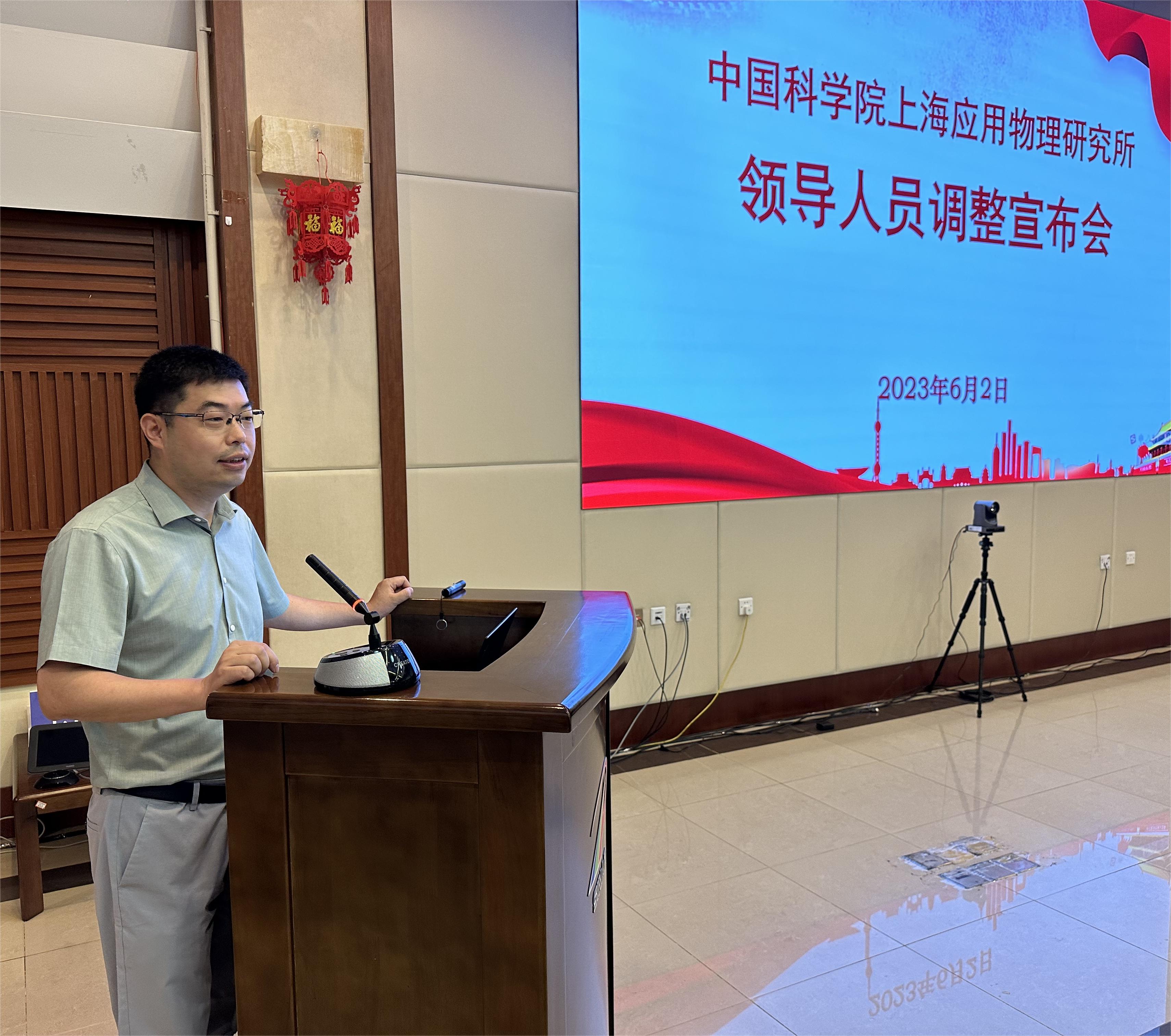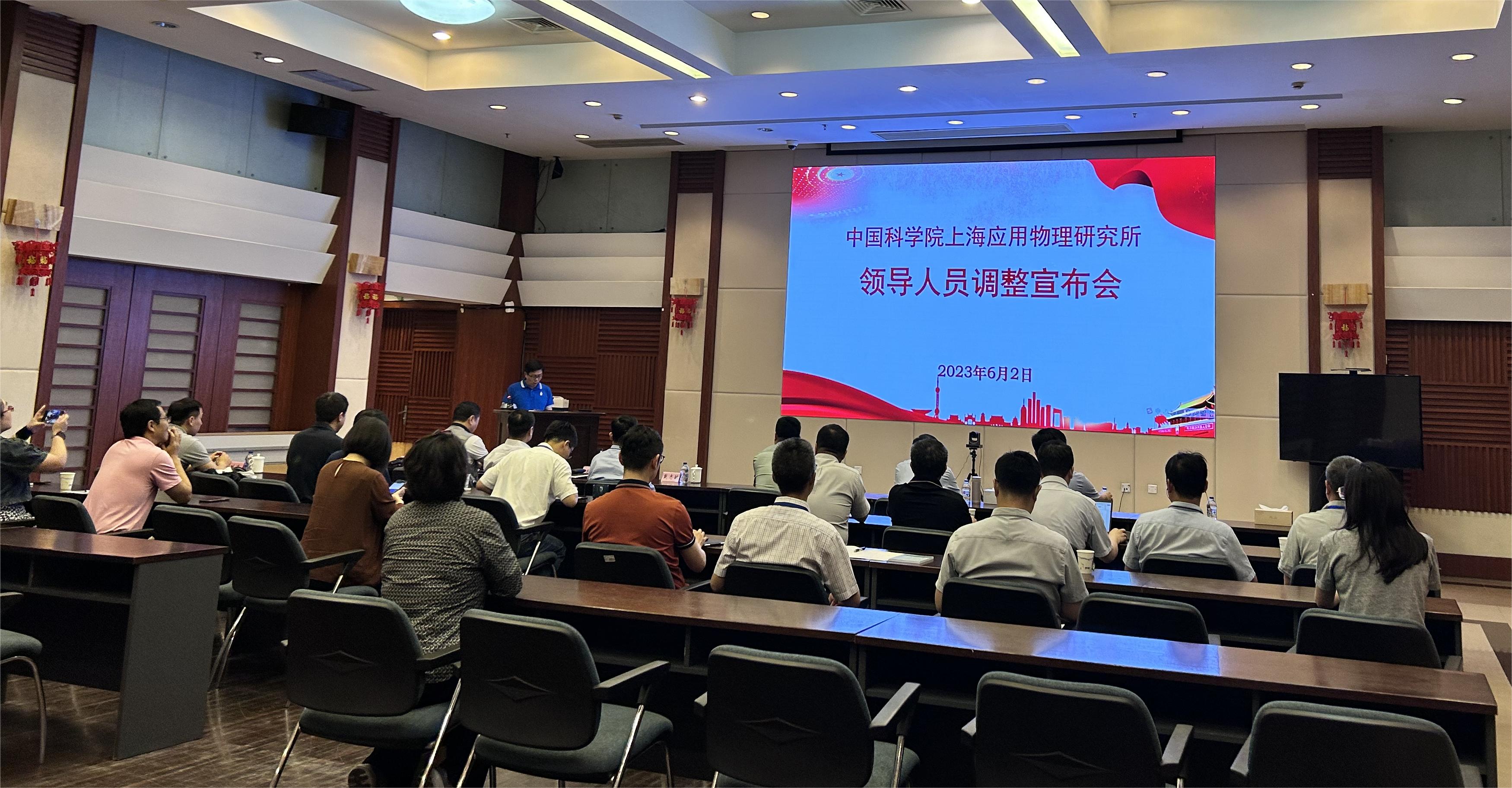 6月2日,上海应物所召开领导人员调整宣布会。上海分院副院长、分党组成员吴成铁,上海分院人力资源部主任、组织干部处处长胡嘉等出席会议。上海应物所领导班子成员、两委委员、所务会成员、职能部门负责人等30余人参加会议。会议由胡嘉主持。