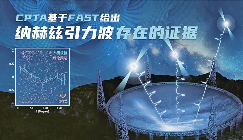 中国脉冲星测时阵列(CPTA)研究团队,利用被誉为“中国天眼”的500米口径球面射电望远镜(FAST),发现纳赫兹引力波存在的关键性证据。图为这一发现的示意图。 中国科学院供图