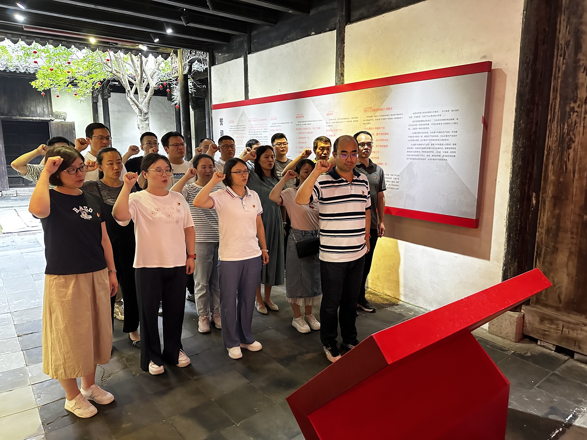 8月27日,两个支部党员共同参观了新四军苏浙军区纪念馆,在讲解员的带领下学习了新四军抗日斗争的英勇事迹,认真观看了历史图片及宝贵文物,回顾了新四军发展壮大的艰难历程,被他们不怕牺牲、英勇顽强、艰苦奋斗、先人后己的奋斗精神和高尚情操深深感染。全体党员一起重温了入党誓词,誓言铮铮,掷地有声。