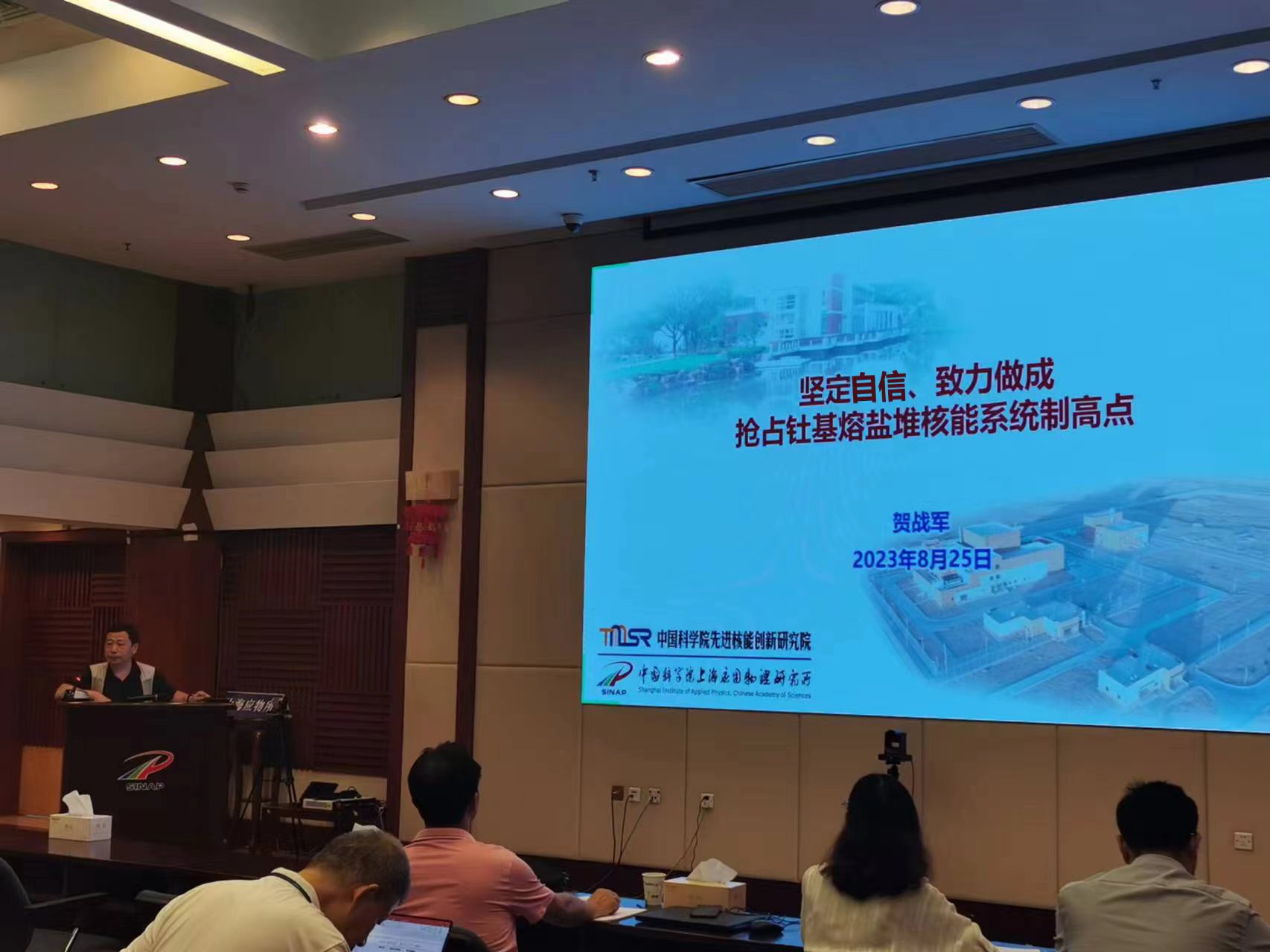 为认真学习贯彻党的二十大精神和学习贯彻习近平新时代中国特色社会主义思想, 2023年8月25日上午,中国科学院上海应用物理研究所熔盐化学党支部和应用化学党支部联合开展了主题党日活动。活动邀请了党委委员、副所长贺战军同志给大家上党课,主题为“坚定自信、致力做成,抢占钍基熔盐堆核能系统制高点”,支部党员线下线上同步参与了本次学习活动。