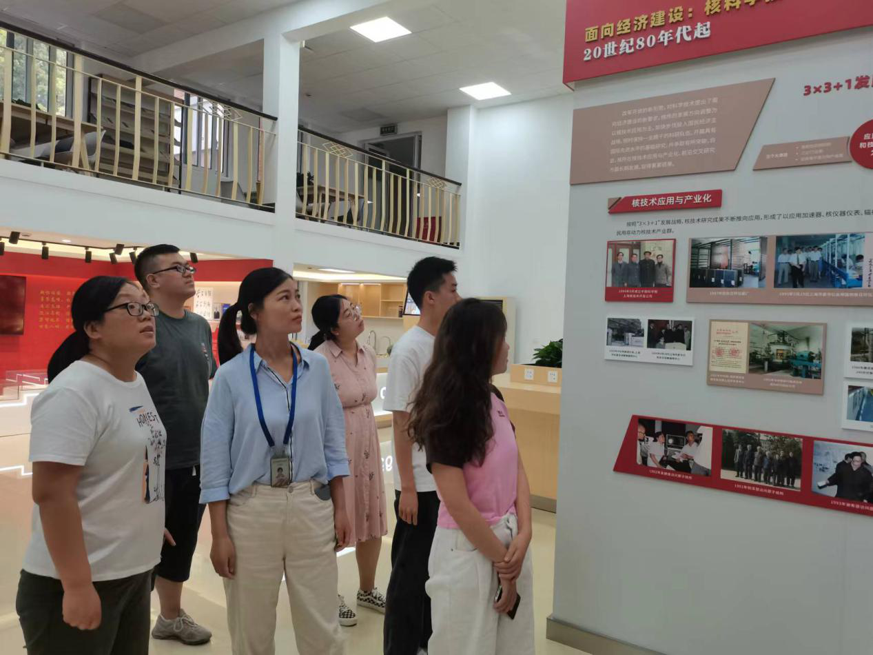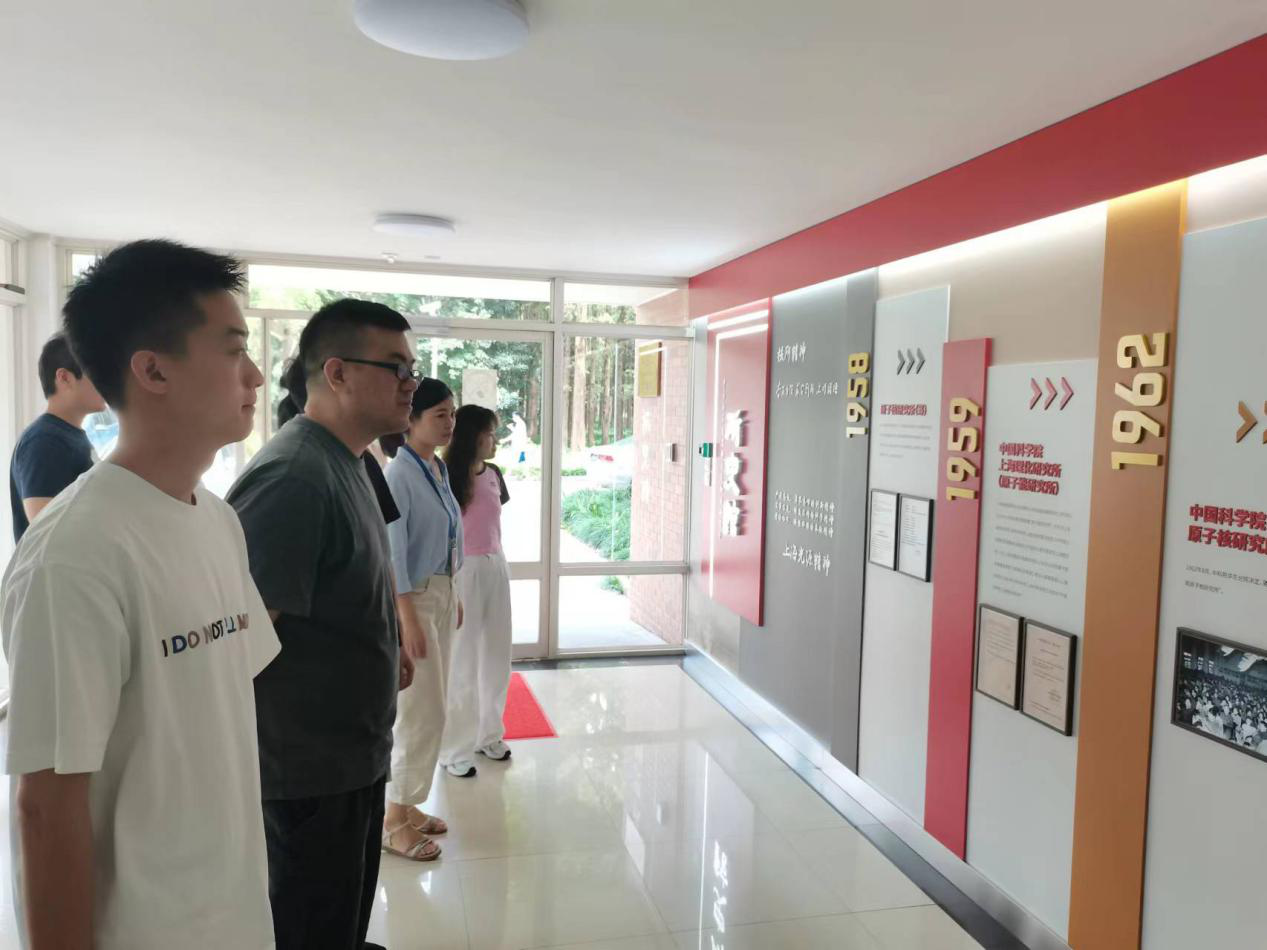 随后,力学组组长、支部副书记王晓艳带领新同事参观了所史馆。从建所之初的1.2米回旋加速器到如今的钍基熔盐堆核能项目,展馆里一幅幅图片,一段段文字,展示了应物所深厚的学科积淀和科技成就。大家通过参观,深刻感受到每个时代都有每个时代的困难与考验,人生没有等出来的成功,只有拼搏出来的辉煌。王晓艳鼓励大家要不忘投身科技事业的初心,扎扎实实学习,虚心请教勤于总结,以咬定青山不放松的韧劲稳步前行。