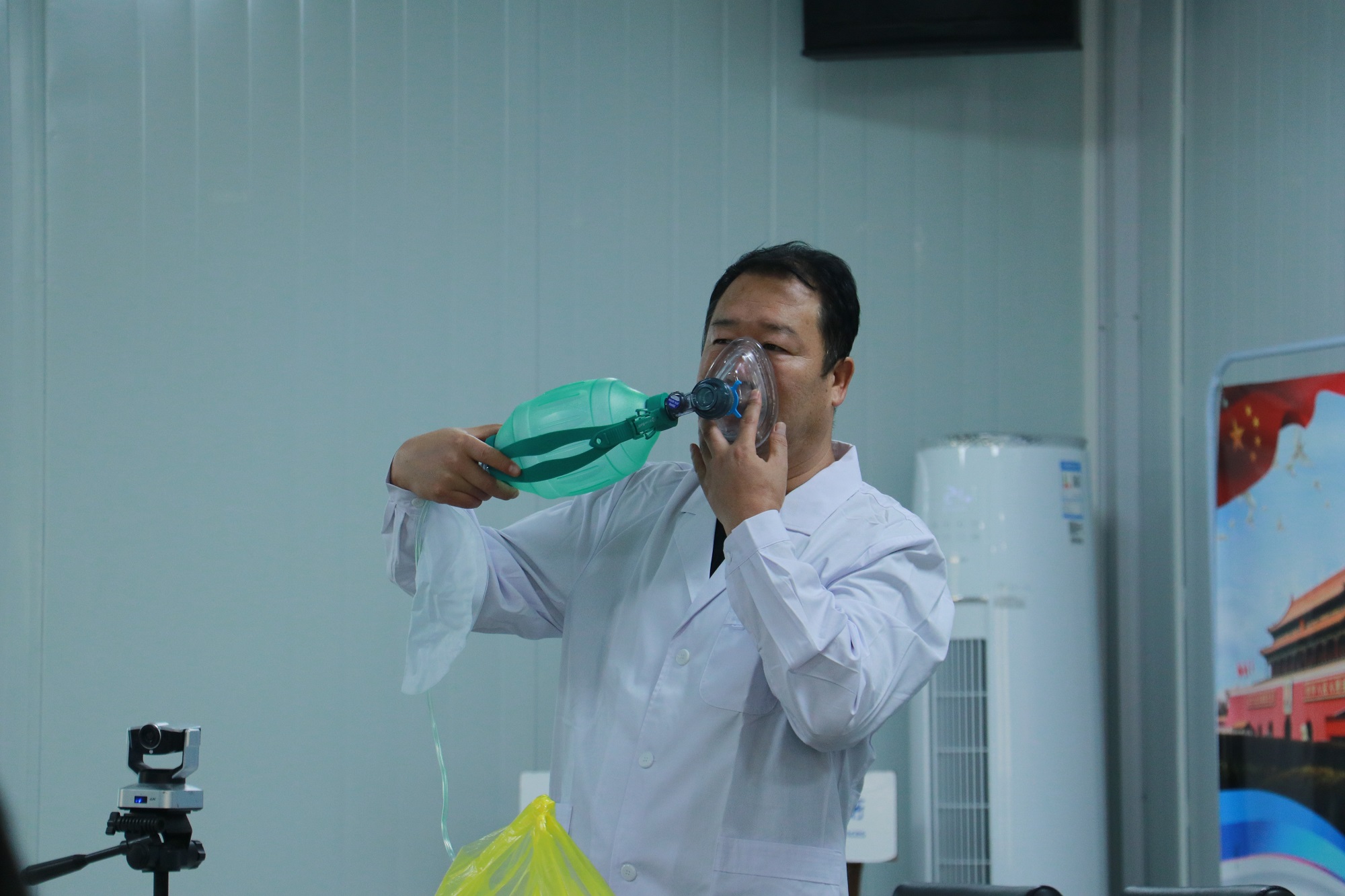 培训会上,汤永武用通俗易懂的语言,真实的案例,从简易呼吸器使用,止血包扎讲起,介绍了创伤救护常见急症和突发事件的应急应对方法,并通过课件现场演示了应急救护知识,包括心肺复苏、急救用品使用方法、按压止血、出血包扎、骨折固定保护、烫伤应急处理等知识。在提问环节,现场参会人员就自身工作场景向汤永武请教了不同环境的急救应对方法。