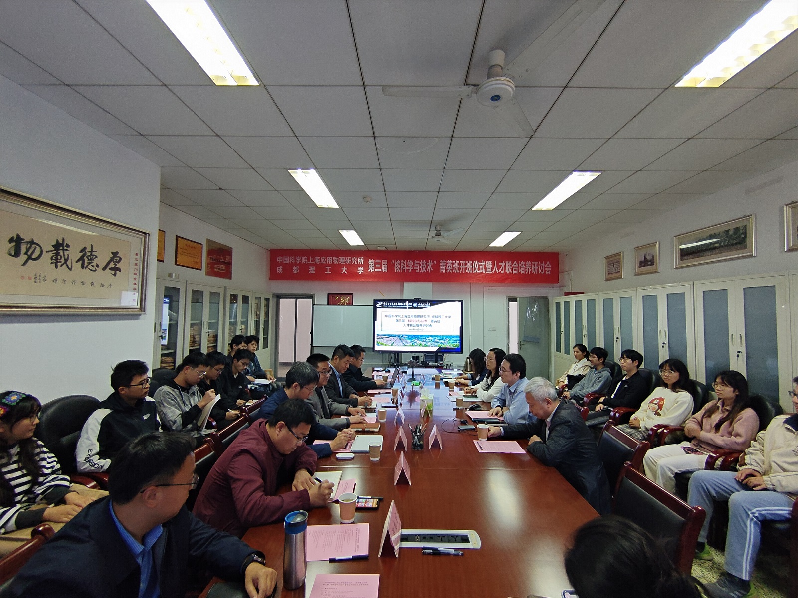 2023年11月6日,中国科学院上海应用物理研究所与成都理工大学核技术与自动化工程学院在成都理工大学举办了第三届“核科学与技术”菁英班开班仪式暨人才联合培养研讨会。成都理工大学核技术与自动化工程学院党委书记闫长辉、党委副书记朱杰、副院长张庆贤、党委副书记、纪委书记杨强及各系部(科室)负责人、辅导员,上海应物所仪控工程技术部副主任刘洪涛研究员、科研与教育处副处长钟静、研究生党总支副书记王文锋研究员、科研与教育处招生主管尹莉莉及菁英班学员出席会议。会议由朱杰主持。