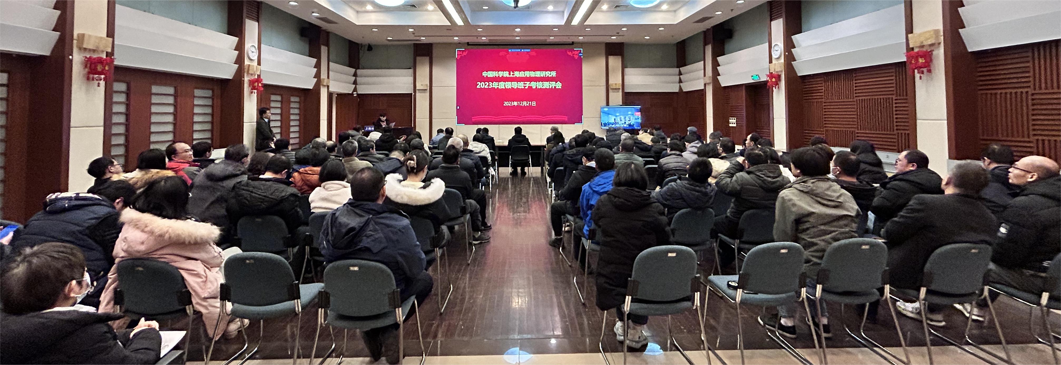 2023年12月21日下午,中国科学院上海应用物理研究所召开领导班子考核测评会,班子成员、两委委员、公共部门和技术部门负责人、党支部和工青妇正职、科研和管理骨干等100余人参加会议。上海分院组织干部处副处长刘晓平出席会议。会议由所党委副书记、纪委书记王茂华主持。
