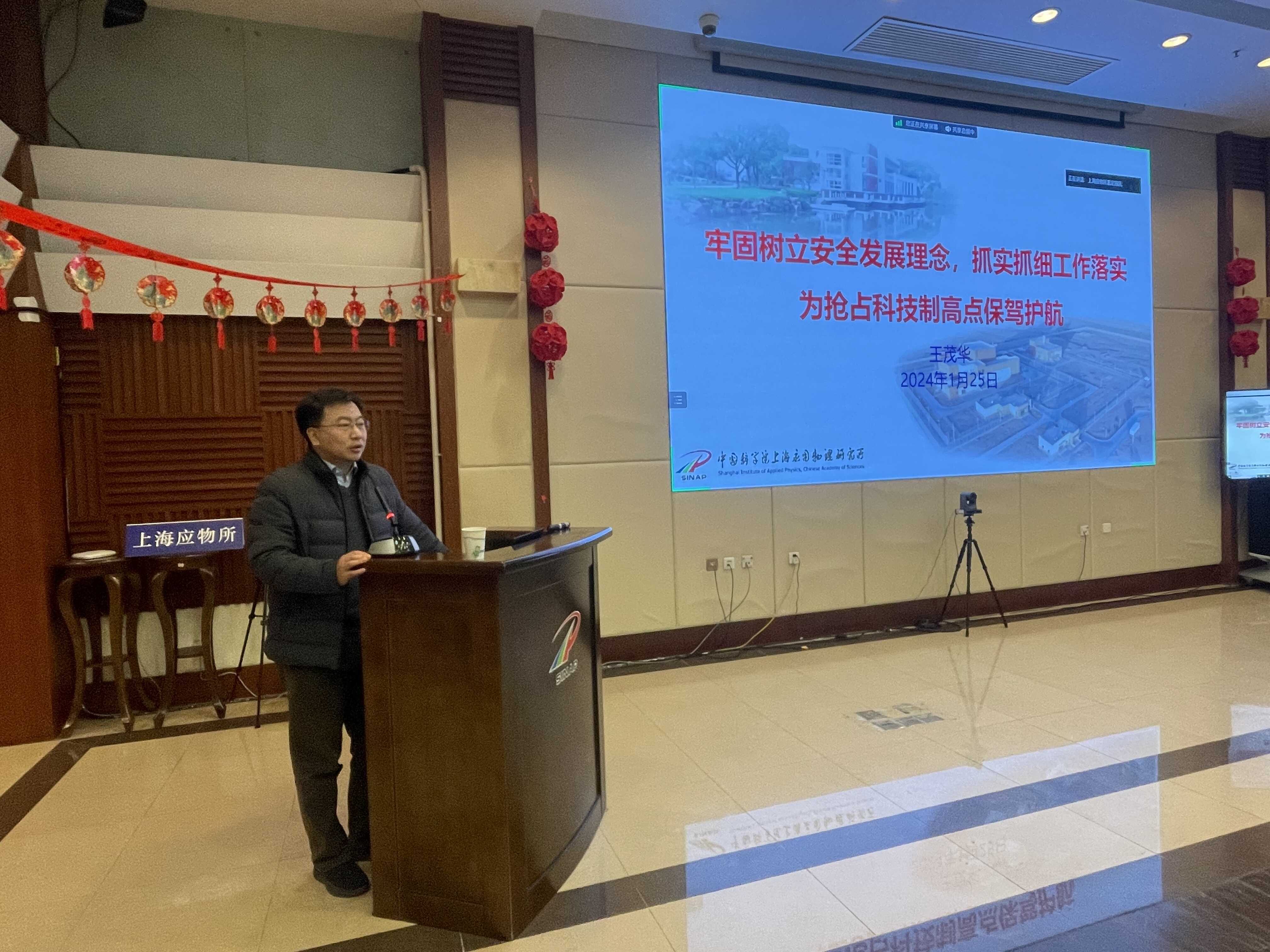 综合办公室副主任尹崇凯报告了2023年安全管理工作,对《中国科学院上海应用物理研究所安全与保密工作责任制管理规定》和《中国科学院上海应用物理研究所安全工作奖惩办法》进行了宣贯,对2023年度发现的问题进行了通报。