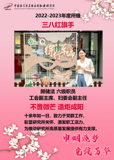 “奋斗——巾帼逐梦 竞绽芳华”主题活动是所妇委会积极响应上级妇委会的号召,深入学习贯彻党的二十大精神,以及中国妇女十三大上,对妇女儿童事业,家庭家教家风建设、群团工作的新部署新要求;同时结合我所实际,以引领学习、岗位建功、传承奋斗等融合而成的主题活动。本次活动的成功举办,将带动全所女性以受到表彰的先进个人和集体为榜样,深入学习贯彻习近平新时代中国特色社会主义思想和党的二十大精神,更加坚定理想信念,勇于担当作为,继续以更加昂扬的斗志、更加饱满的热情、更加旺盛的干劲,投身于核能事业,为加快抢占科技制高点再立新功。(妇委 供稿)