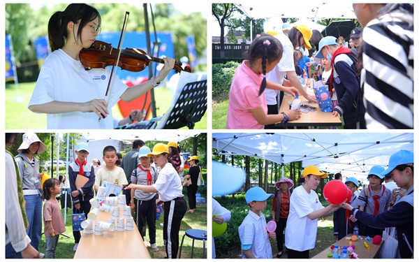 为了让青少年更近距离“触摸”科学、了解科学,本次开放日活动在户外草坪搭建了科普市集,让大家通过互动小实验实现了“科学零距离”。在园区草坪上,在研究生乐队热情洋溢的暖场音乐中,来自上海应物所核力前行科普社团的研究生们带来了“密度魔法”“浪漫星空”“筷子的神力”“行走的彩虹”“自制空气炮”“神奇的水魔力”“双球实验”“水生花”“善变的紫甘蓝汁”“蓝晒印象”等科学小实验。志愿者们带领同学们动手操作,耐心讲解科学原理,引发了青少年对科学研究浓厚的兴趣。