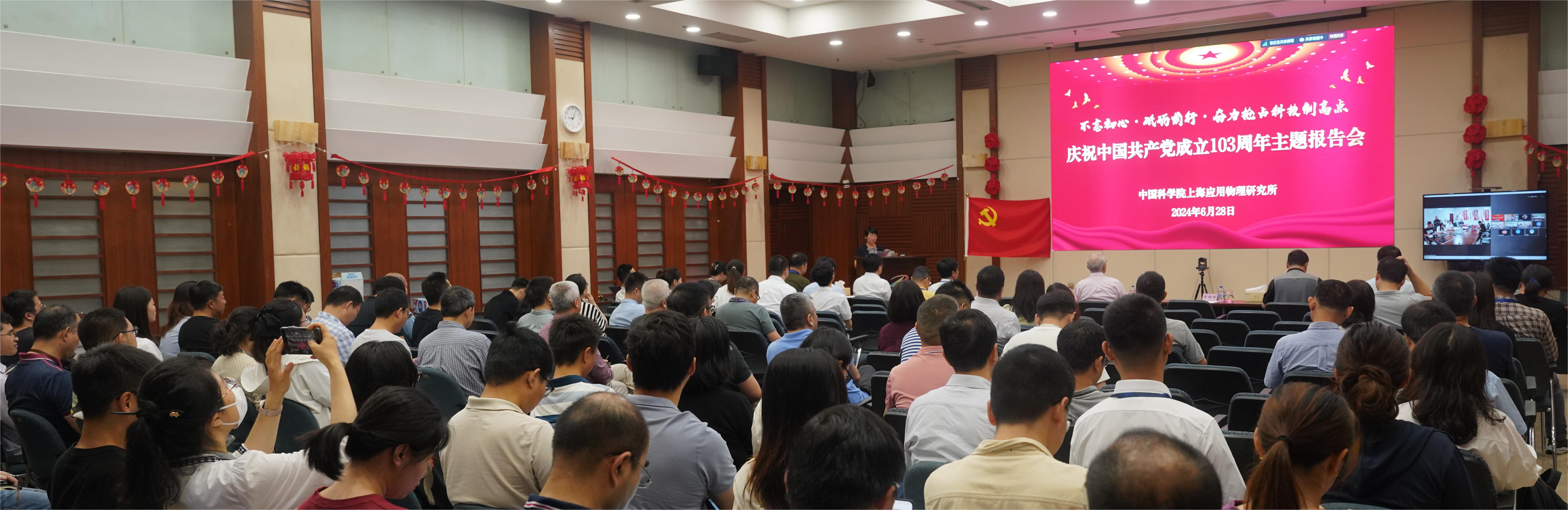为深入贯彻落实习近平新时代中国特色社会主义思想,热烈庆祝中国共产党成立103周年,喜迎祖国75周年华诞、庆祝建院75周年、建所65周年,弘扬核所精神,努力营造健康向上、奋发进取的干事创业氛围,激励广大党员群众奋力投身于科技创新的伟大事业中,6月28日,中国科学院上海应用物理研究所召开“不忘初心·砥砺前行·奋力抢占科技制高点”庆祝中国共产党成立103周年主题报告会。