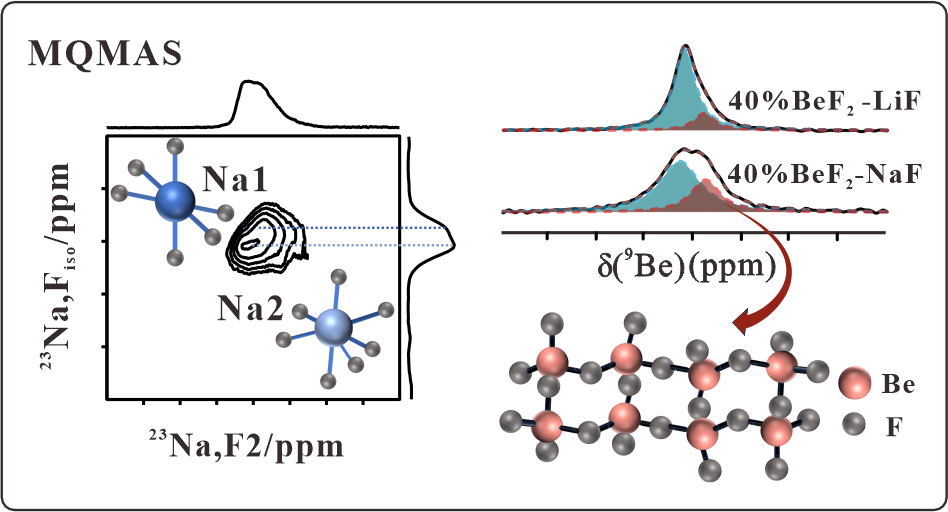 近日,中国科学院上海应用物理研究所熔盐化学工程技术部在堆用高温氟化物熔盐结构原位研究取得重要进展,基于高温核磁共振技术详细阐述了FNaBe与FLiBe高温熔盐中Be-F络合结构的异同。相关成果发表于知名化学类期刊《JACS Au》(论文题目:“HT-NMR studies of the Be-F coordination structure in FNaBe and FLiBe mixed salts”)及《Physical Chemistry Chemical Physics》上(论文题目:“Probing the local structure of FLiBe melts and solidified salts by in situ high-temperature NMR”)。